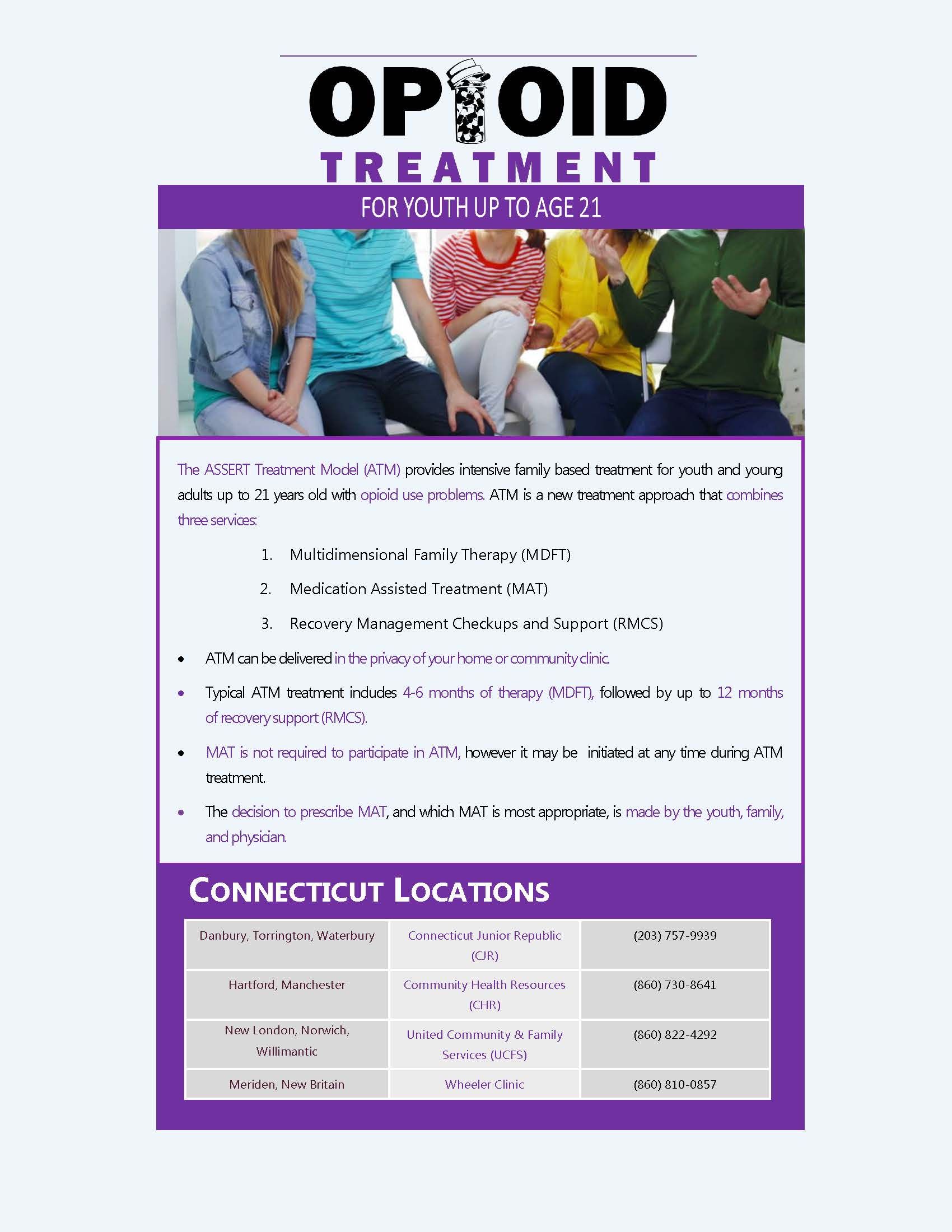 The ASSERT Treatment Model (ATM) provides intensive family based treatment for young adults up to 21 years old with opioid problems. ATM is a new treatment that combines three services: